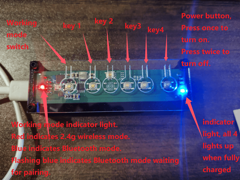 First, turn off the WBT2-V4, then long press the working mode switch button, turn on the power switch, and use a USB data cable to connect the USB port of the computer and the USB-A port of the WBT2-V4 far away from the PCB. Please note that only the USB-A port far away from the PCB can connect to the setting software, and the other USB-A port cannot communicate with the setting software.